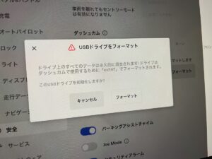 センターコンソールの「安全」を開くと「USBドライブをフォーマット」のボタンが表示されるので、迷わずタップしよう。